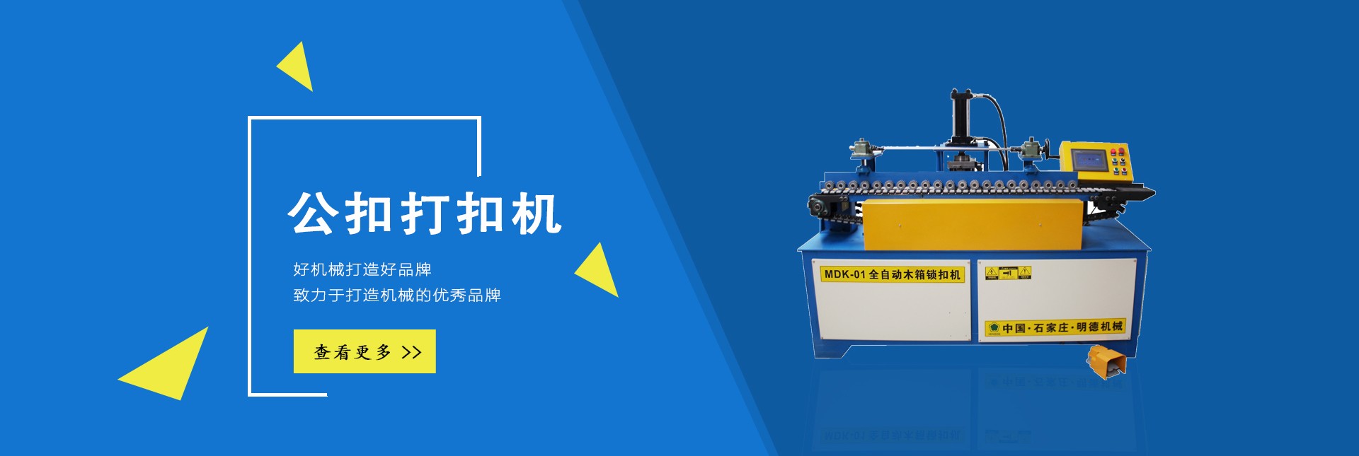 石家莊明德包裝機械有限公司是國內(nèi)專業(yè)生產(chǎn)木全自動木箱鋼帶機、半自動公母扣木箱打扣機、全自動雙排孔定長切斷機、美式托盤打釘機械、托盤刨槽機、倒角機、木包裝箱、木托盤的生產(chǎn)廠家。
